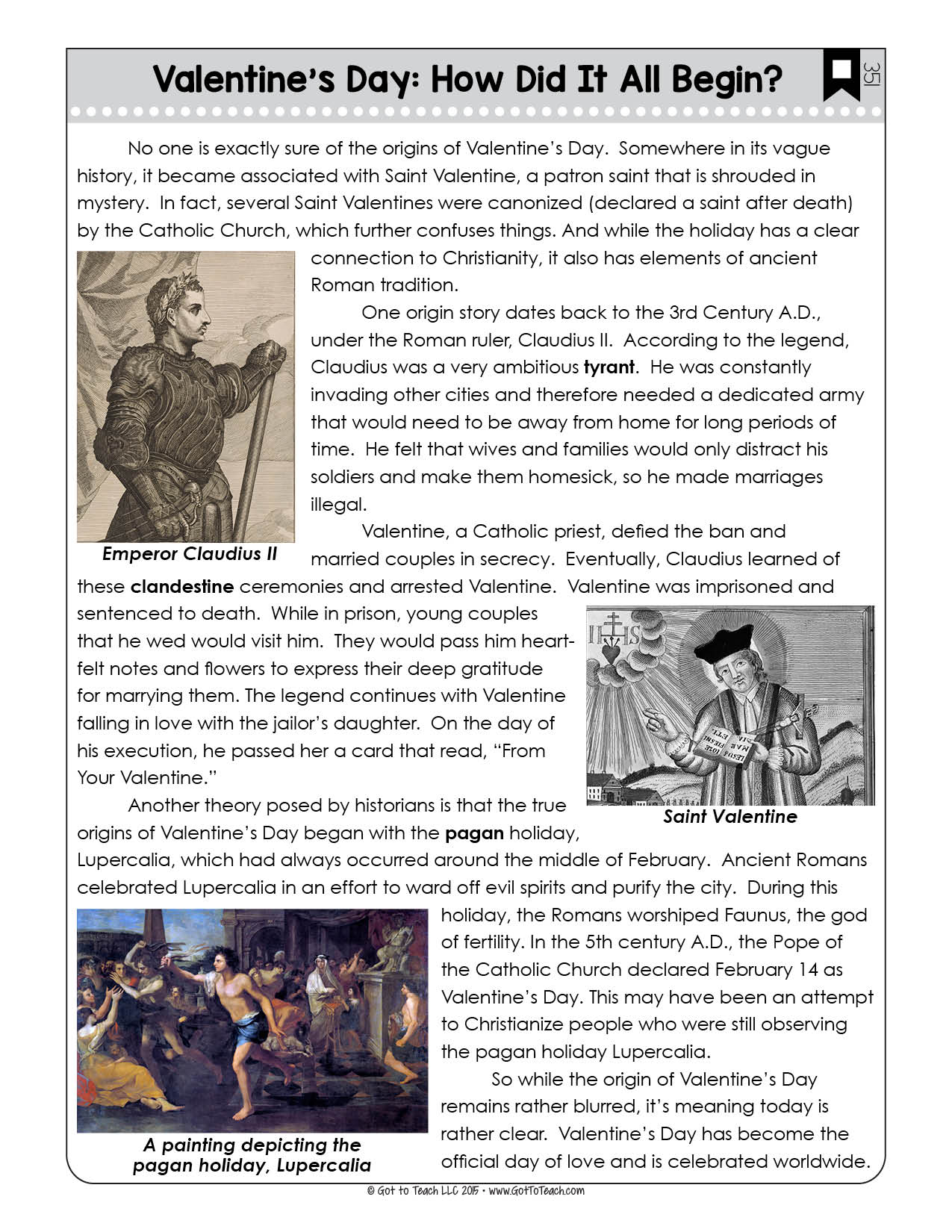 ♥Valentine’s Day: How Did It All Begin? (Grades 4-5)
